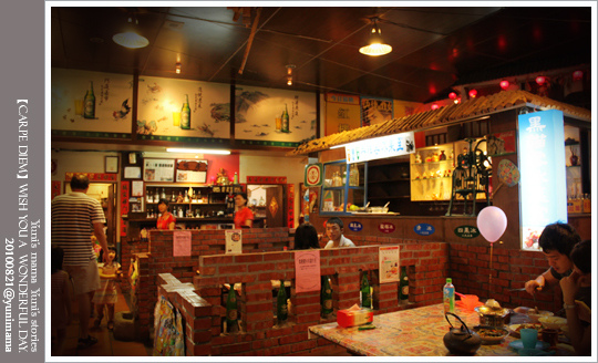 裡頭陳設由紅瓦磚作為客桌的隔間....進入後 彷彿70年代上身