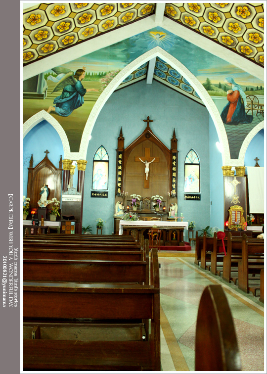 教堂沒有很富麗堂煌..但是色彩都算鮮明豐富...是台灣多半教堂的樣式