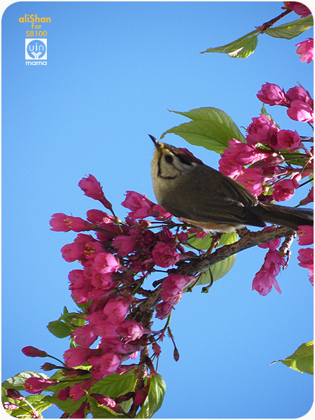 ---這顆櫻花樹不高 所以可以捕抓到這隻鳥...這幅畫面很美 只是聚焦不夠準