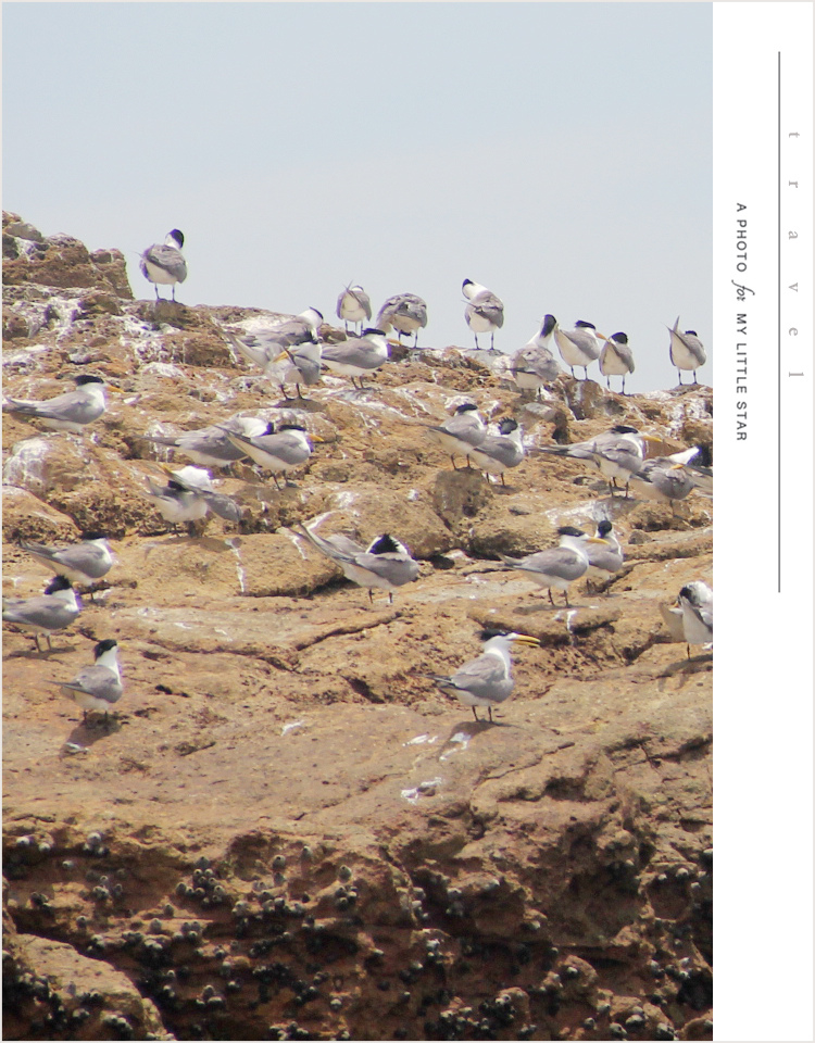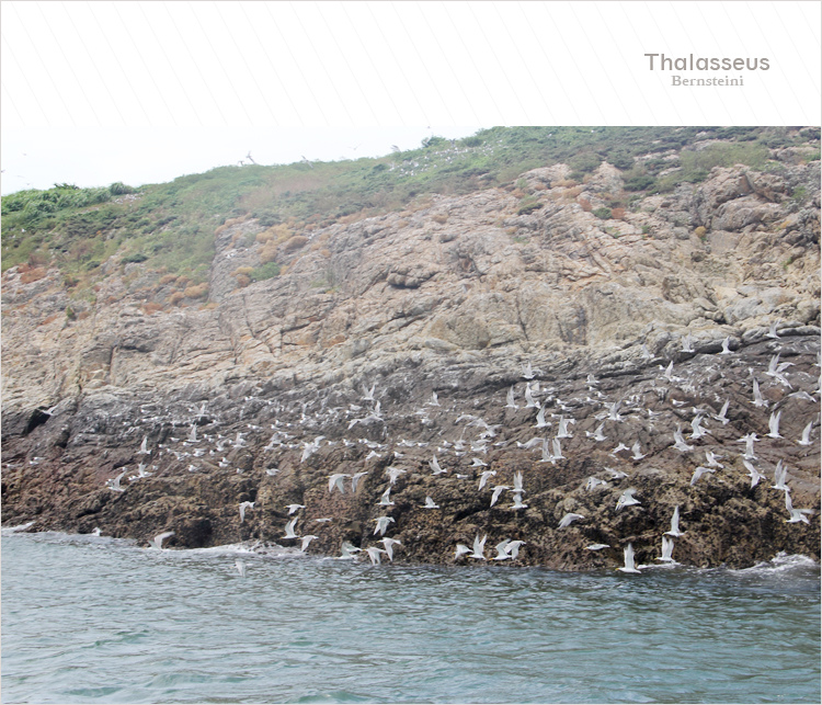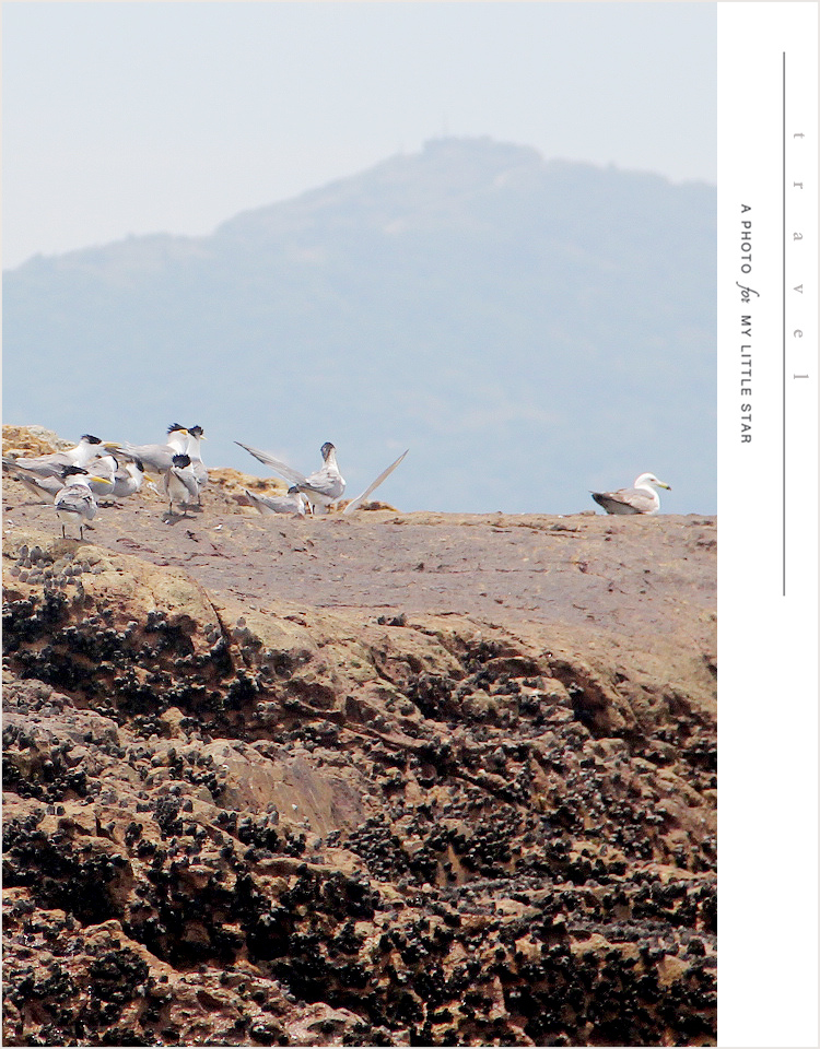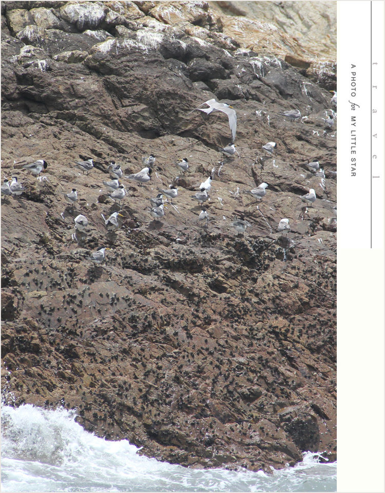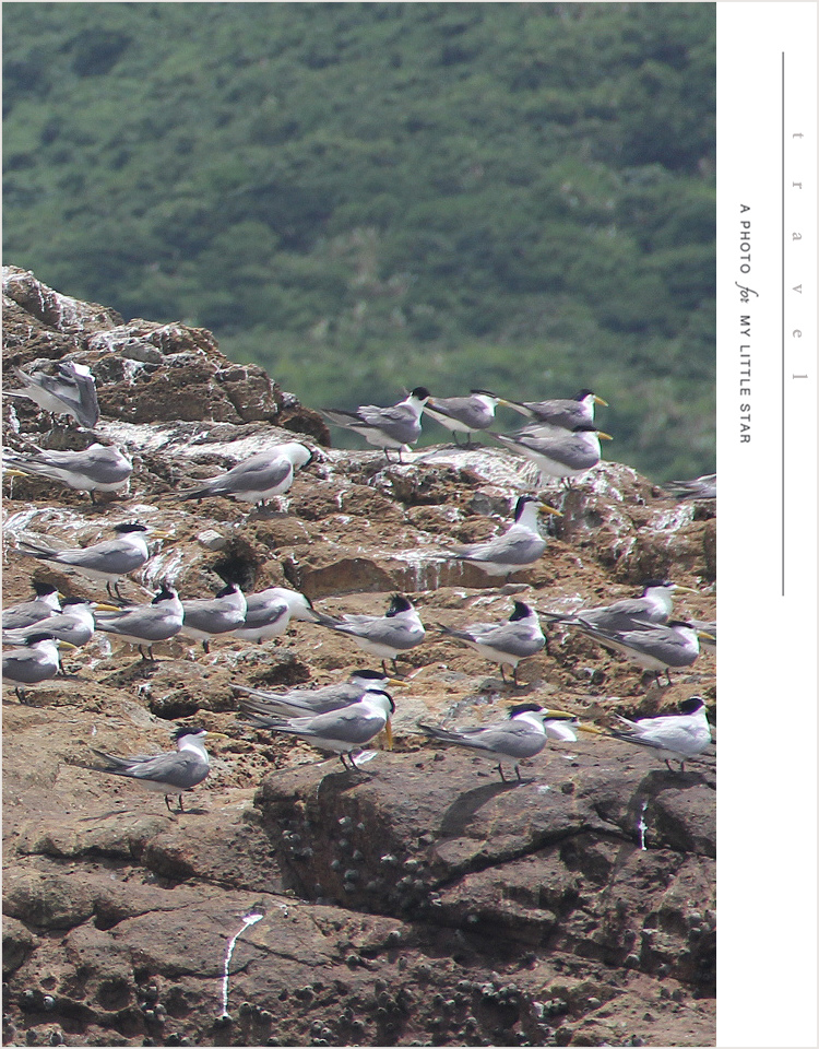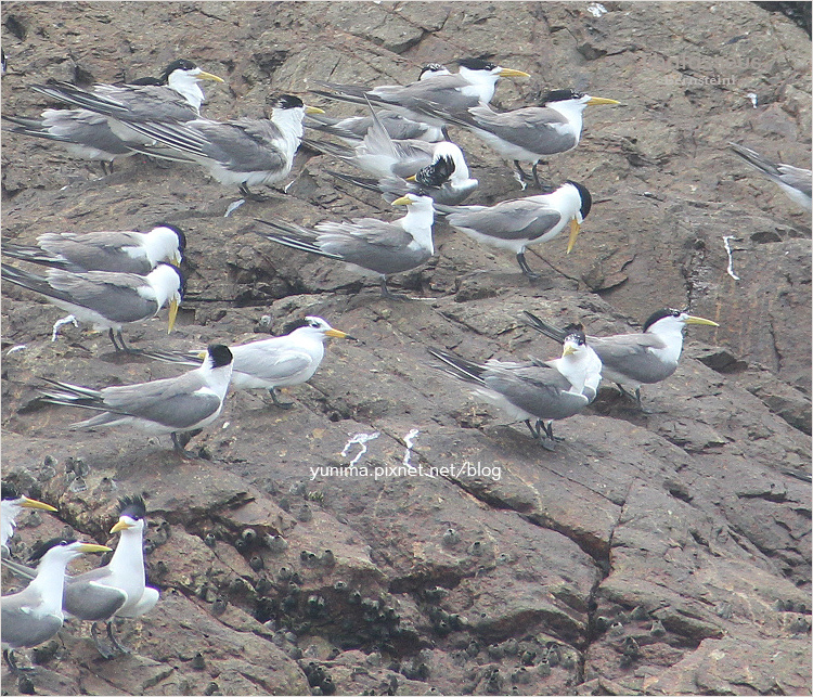 密密麻麻的燕鷗們 跟多彩的花崗岩石們融合一體 其實遠觀還真難分辨