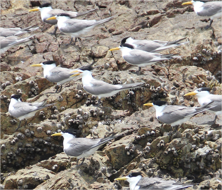 ↓ 中間 嘴巴尖尖的地方是黑色 那就是黑嘴端鳳頭燕鷗嘍!!