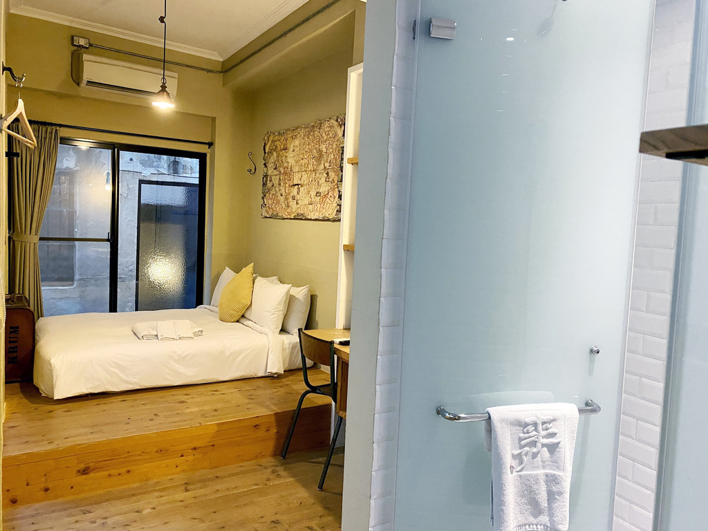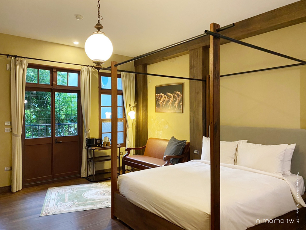 八間房型擁有獨立衛浴各具特色之外,呈現古味典雅的氛圍,露天的綠意中庭跟婗媽老家一樣,讓人好懷念的公寓設計,不時能看到經過的旅人會在門口留影,可見它如此的火紅。