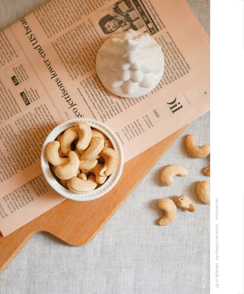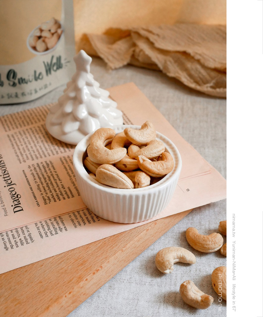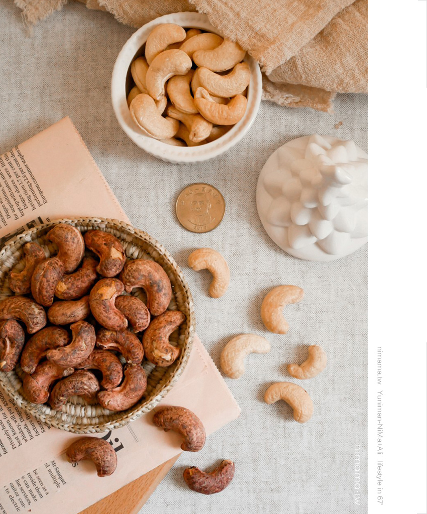 堅果類、腰果對於在飲食控制、有運動的女生或朋友來說,是很好的蛋白質來源,有些時候下午茶或飯後嘴饞時可以抓幾顆補充,作為健康又美味的零嘴!而且腰果還有膳食纖維、維生素、還有3C族很需要的Omega-3豐富的營養價值、拿來掌零嘴真是幸福!