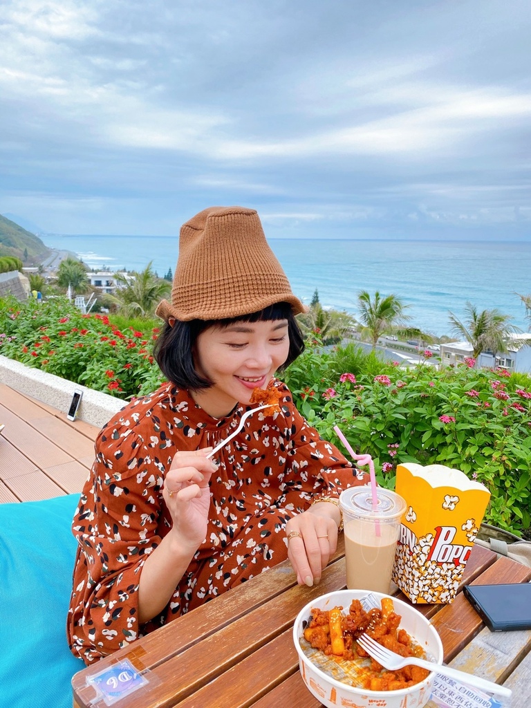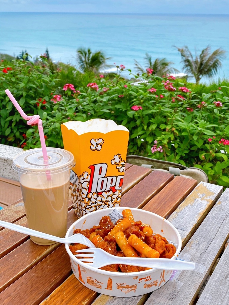原本吃飽飽的我們沒想點餐的,待著待著就餓了,海崖谷可以折抵消費、原以為餐點會貴參參,結果並沒有因為是觀光區而貴很多、是合理範圍、但半年後旳今天就不知道有沒有變了!原本要點爆米花、櫃檯很親切跟我們說打卡還是評論可以送爆米花這樣可以省下來買其他東西,海崖谷的爆米花我覺得好吃!