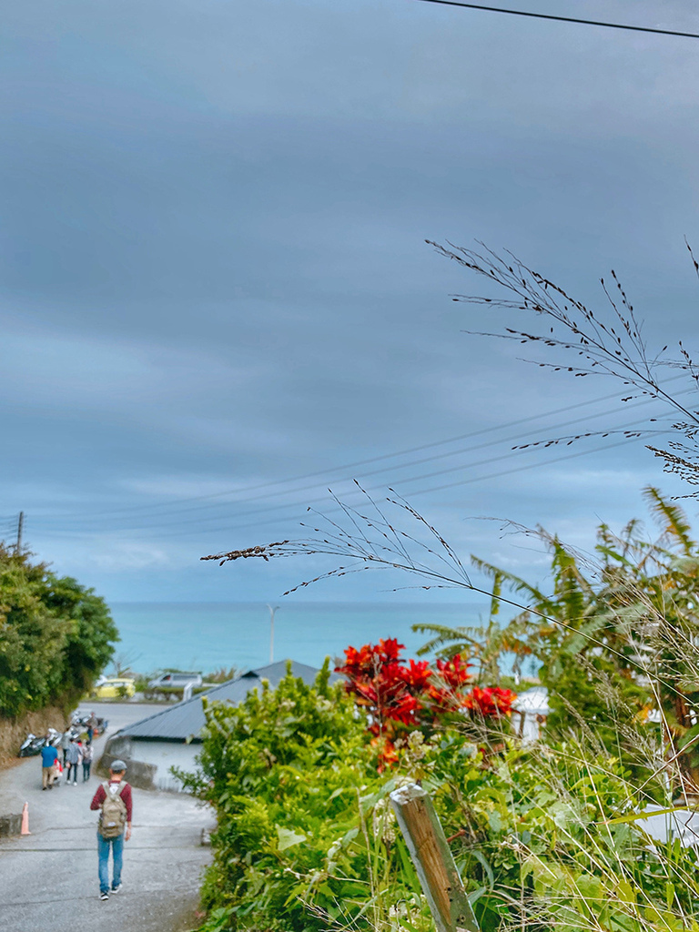 延著海平線驅車前往(車可停在路邊)延著這條斜坡上來,會先遇到售票口、購買門票後即可進入到後山花園的海崖谷了 !