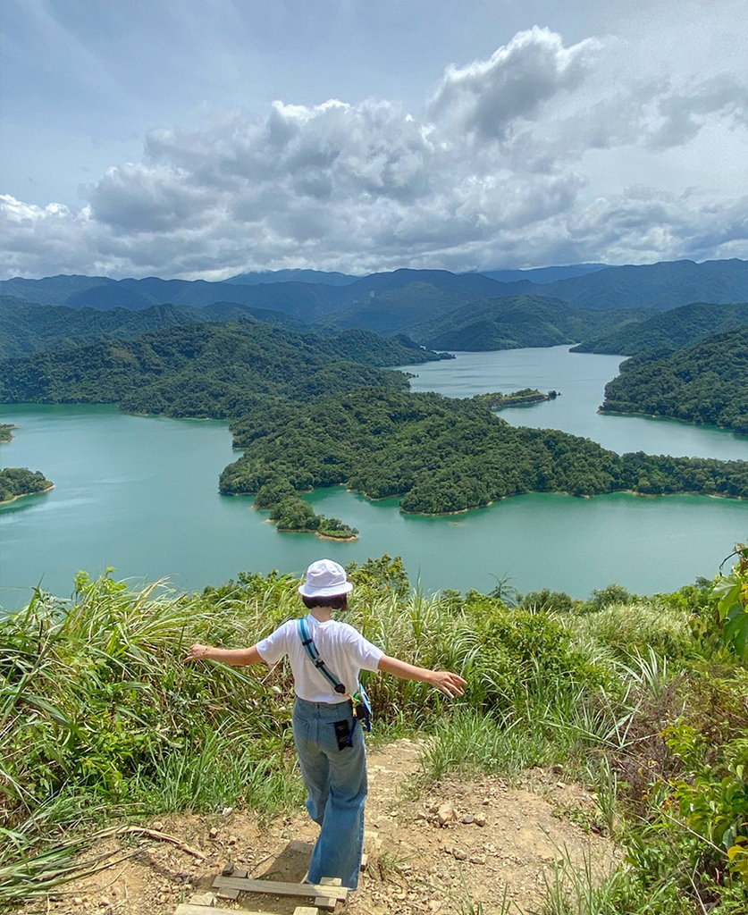 鱷魚島真的很屌!除了非常像鱷魚之外、遠方山嵐層層疊疊、加上碧綠的翡翠水庫好不美麗呀!真的好迷人,要不是婗怕高、很想待久一點。